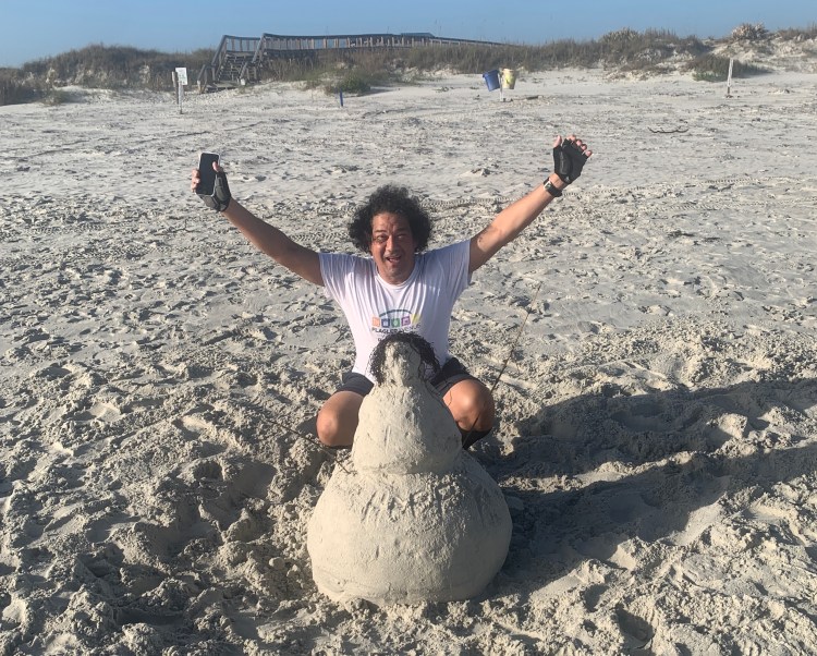 Some of the birds in Florida and a man who was just passing by this sandman and when I commented on the amazing likeness he happily posed behind it.