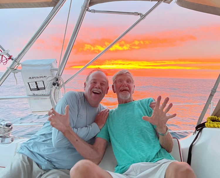 As usual at sea we had a beautiful sunset and Pat and John bonded !! Now we are anchored in Charleston.