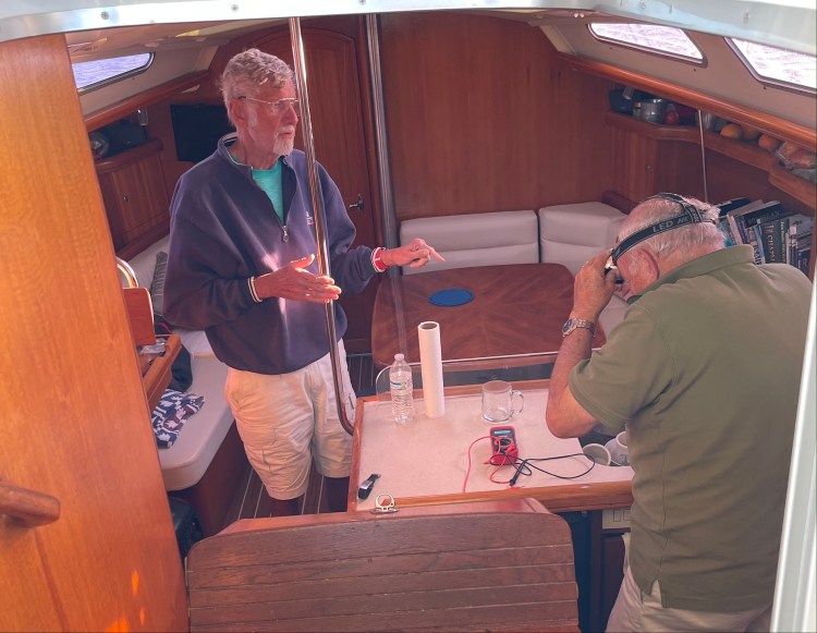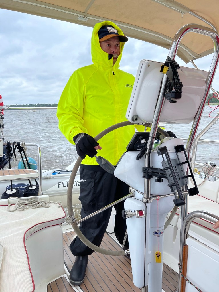 Picked up a mooring ball in South Carolina and I think Mat and John were considering calling a relate counsellor when they heard Pat and I picking up the mooring ball. Pat said he was shouting because he’s deaf but I think his tone was not one of a deaf man and my response was not one of a lady.