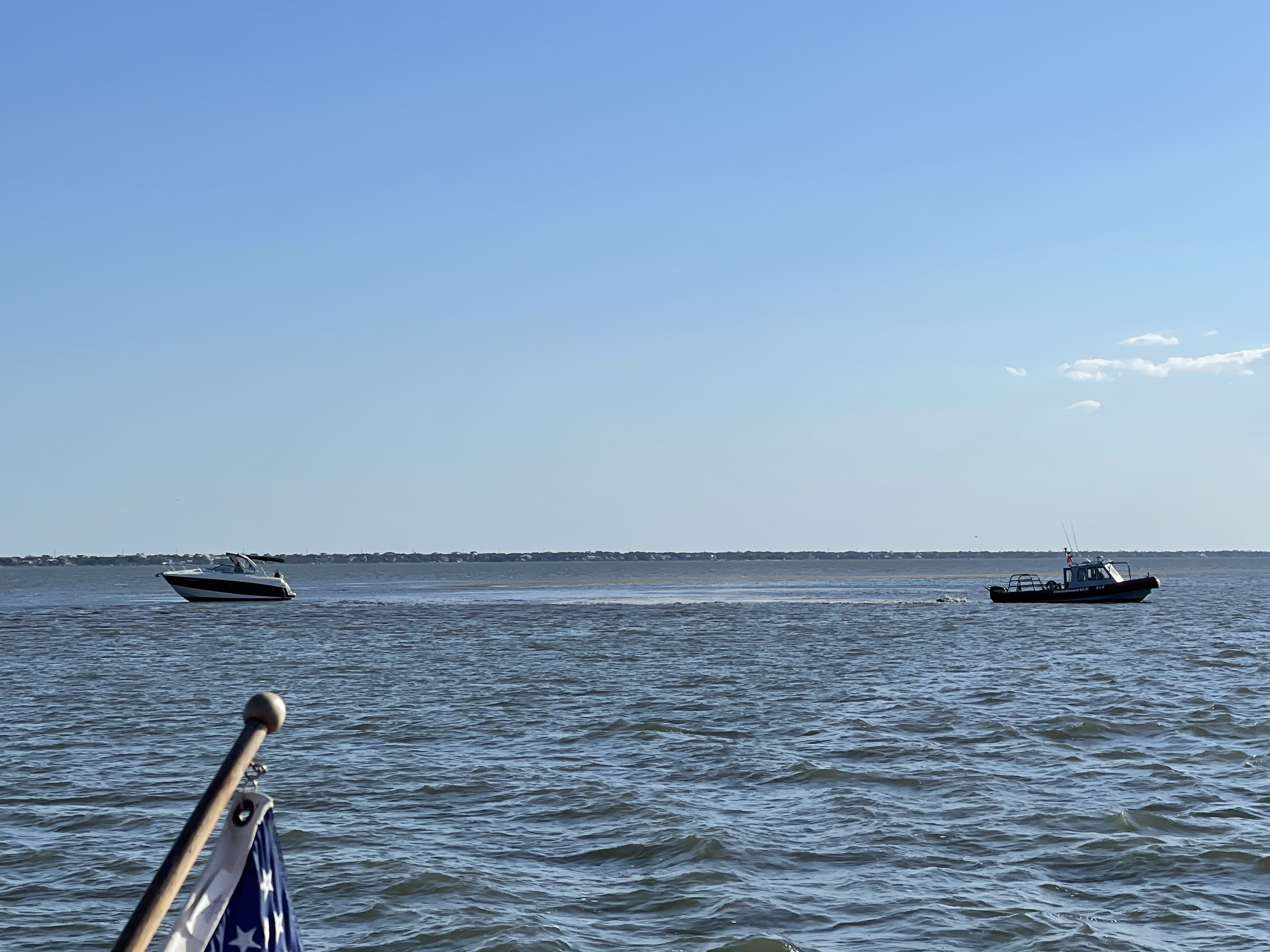 As we were motoring along we saw a fancy motorboat WAY out of the channel with Tow boat trying to pull it off the ground. It looked well and truly dug in so we assume he must have been going at a hell of a speed. Interestingly enough it appeared to be a more mature couple. Some time later they sped past us.