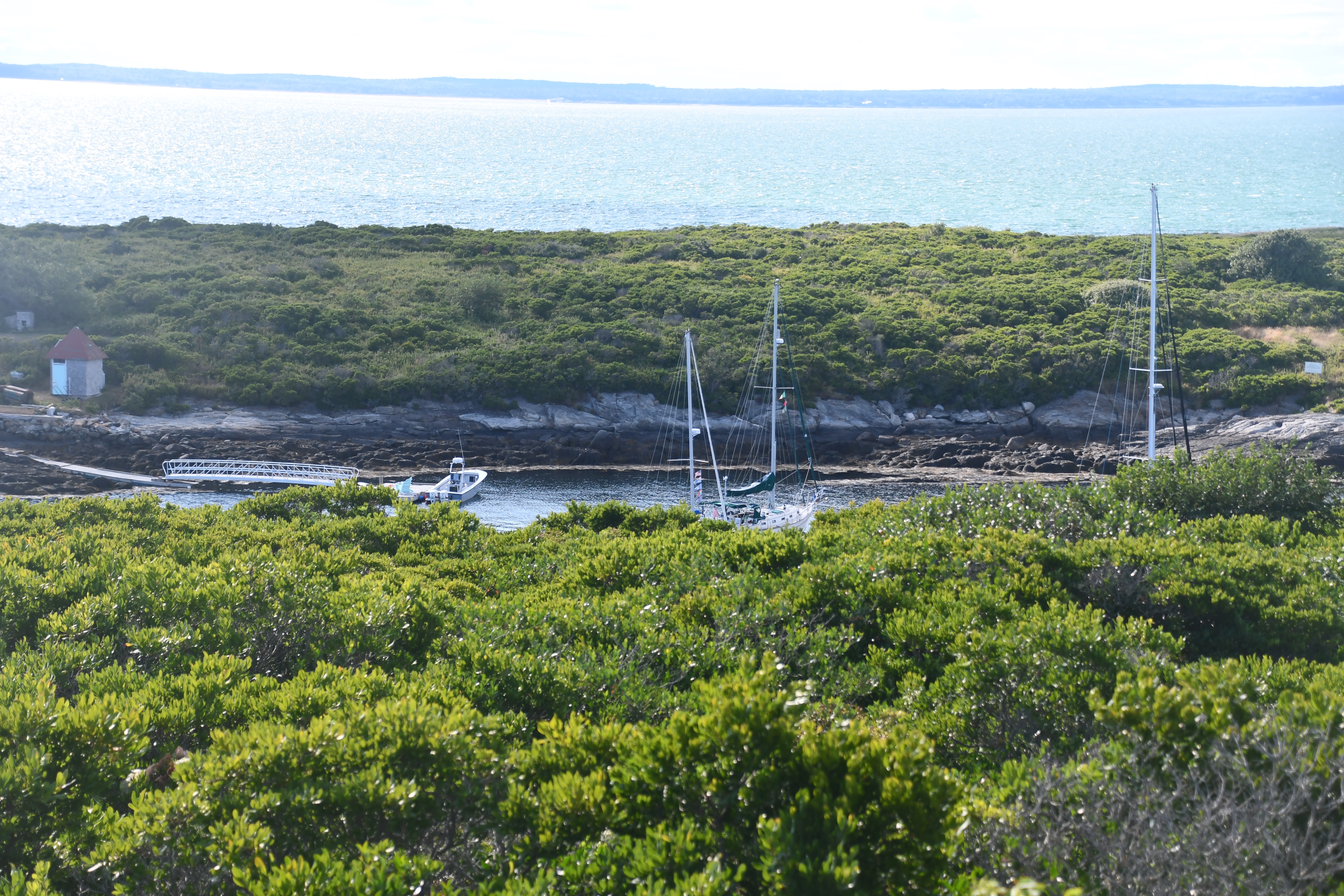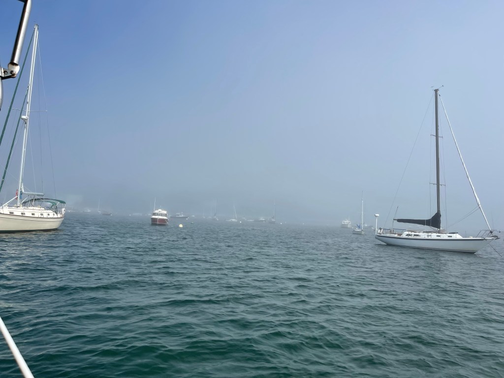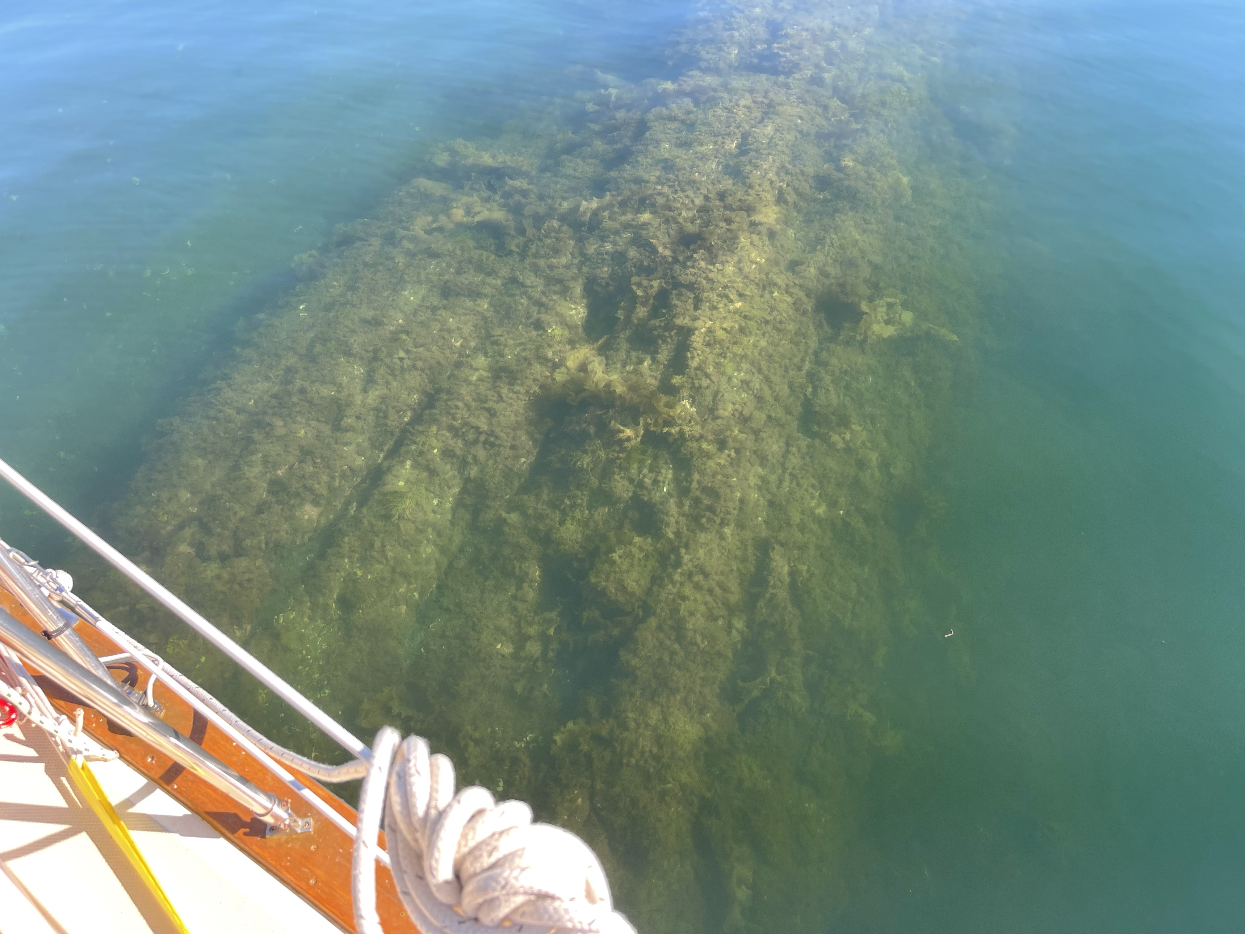 As I said we INTENDED to moor in Damariscotta river and had booked a mooring. When I checked in Navionics I realized it wasn’t up the river but on an Island. Damariscotta Cove. Just at the mouth of the river I changed course and went to the island. It was beautiful, isolated but appeared to have only 4 moorings and nothing of the pump out station she mentioned. I called her and realized it WAS actually up the river as I had originally thought. It was too late to go back and I had fallen in love with the place. We were told by one of the sailors to pick up an mooring ball however later, when we had moored, the guy who lived in the only house on the island came down and told me they were private moorings…. his. When I said I would move, he then said it was ok but asked what was our draft as there was a large rock near the mooring. (To the non sailors that is how deep we can go.) He then muttered. you should be OK. I wasn’t overly convinced but Pat insisted we were fine. In the morning I looked over the boat and saw the rock. But I guess Pat was right we were fine.