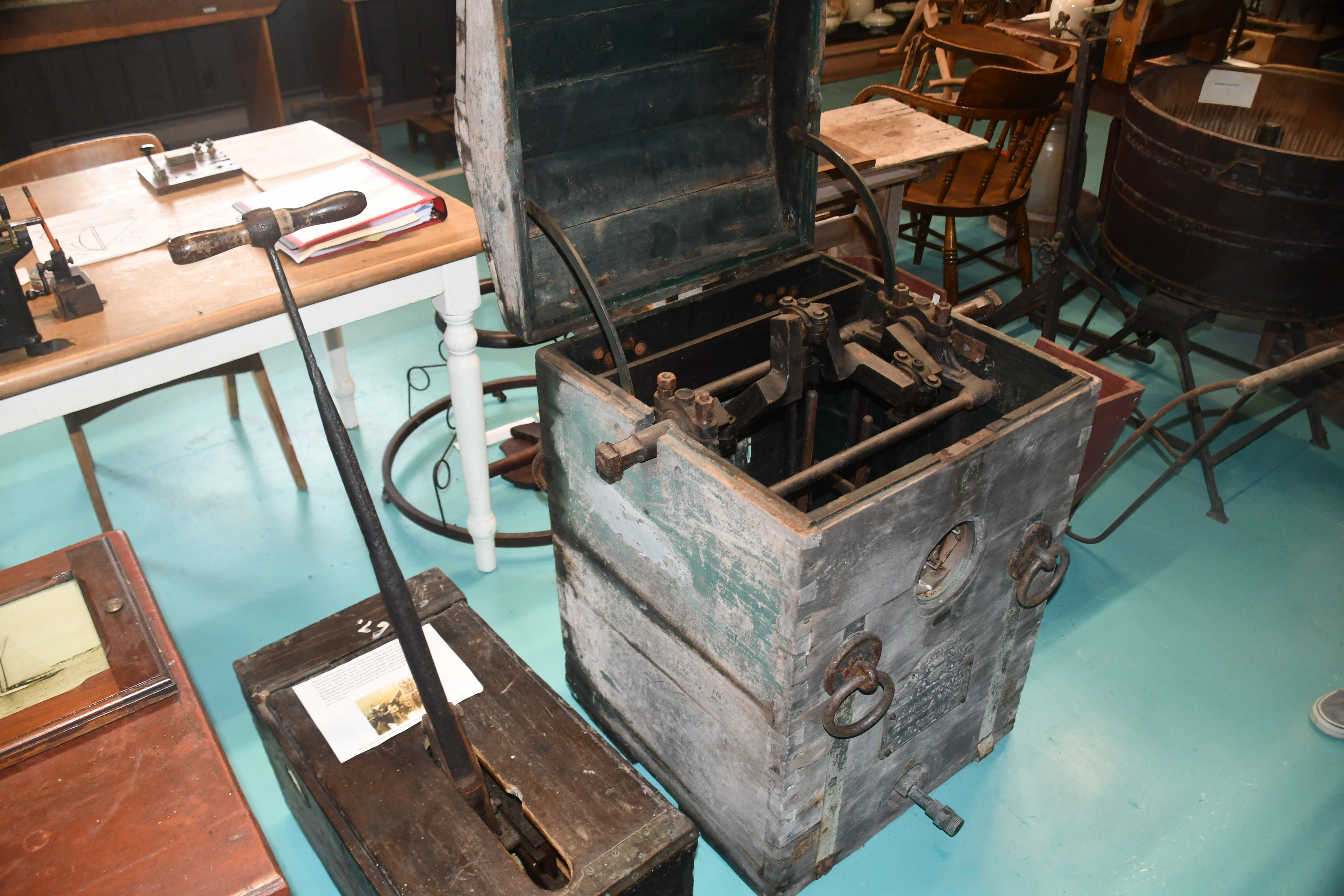 I must say something about all the museums we’ve seen. The Maritime Museum in Halifax was of course, very good, very professionally done but the real charming museums are in the small villages on the way up to Cape Breton. They let you touch and try everything. In the Deny’s museum she showed us how the folding bed could be opened and closed she made the little high chair up and down and then encouraged me to play the organ to try it and also to push and pull the air of the diving equipment but the ‘piece de resistance’ was the oldest vacuum cleaner. Not electric. As you push it along the bellows expand and suck the dust up. Some of you may be surprised that I recognized it.