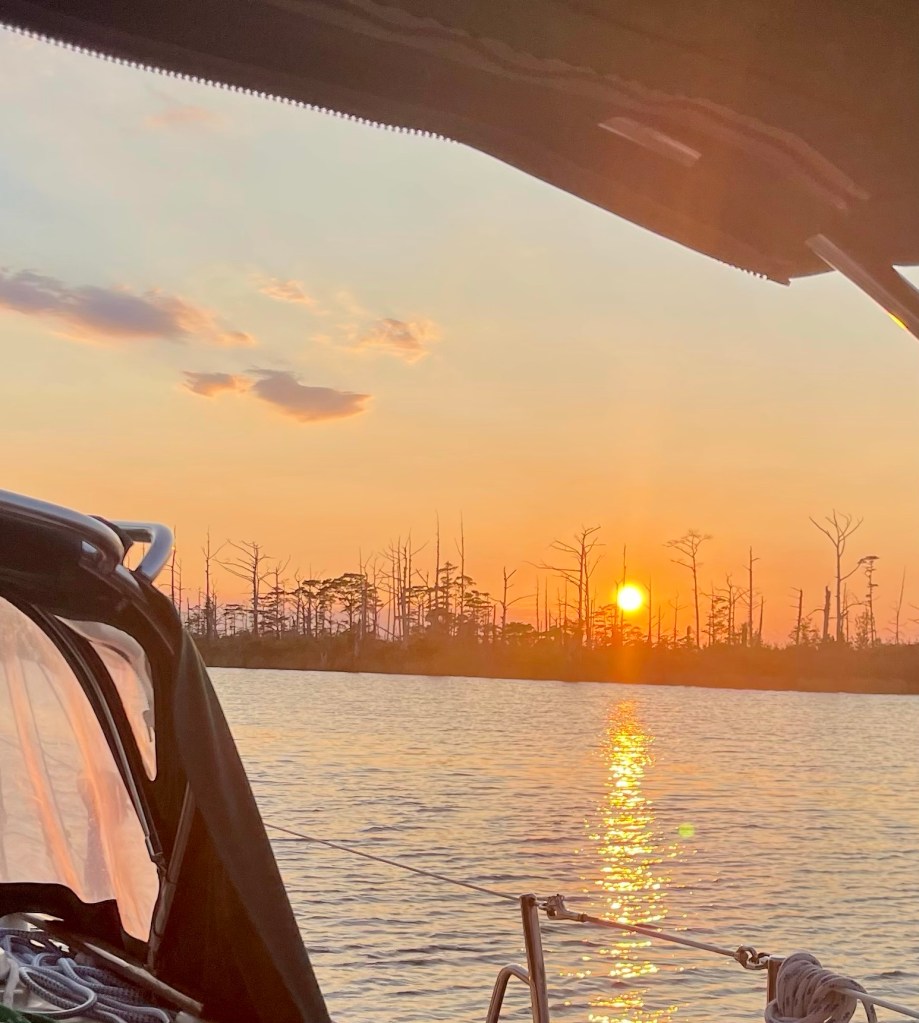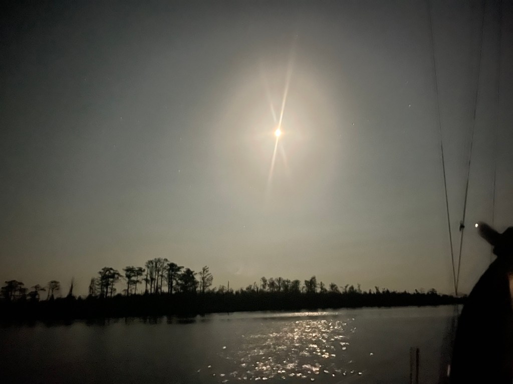 Restocked at the Piggly Wiggly and headed off down Alligator canal to a beautiful quiet anchorage. We coated ourselves in mossie spray and I have the fan and two mossie repellent burners that works.