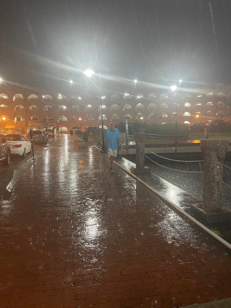 Portsmouth is a beautiful town steeped in history. The dock is free and in the center of the town however, there had been no mention of the tide. We went out to the local German restaurant ( big fat sausages disgusting sauerkraut). Pat loved it and I offered it up to the holy souls. On return to the boat the dock was 6 ins in water and boat sitting 5ft above that!