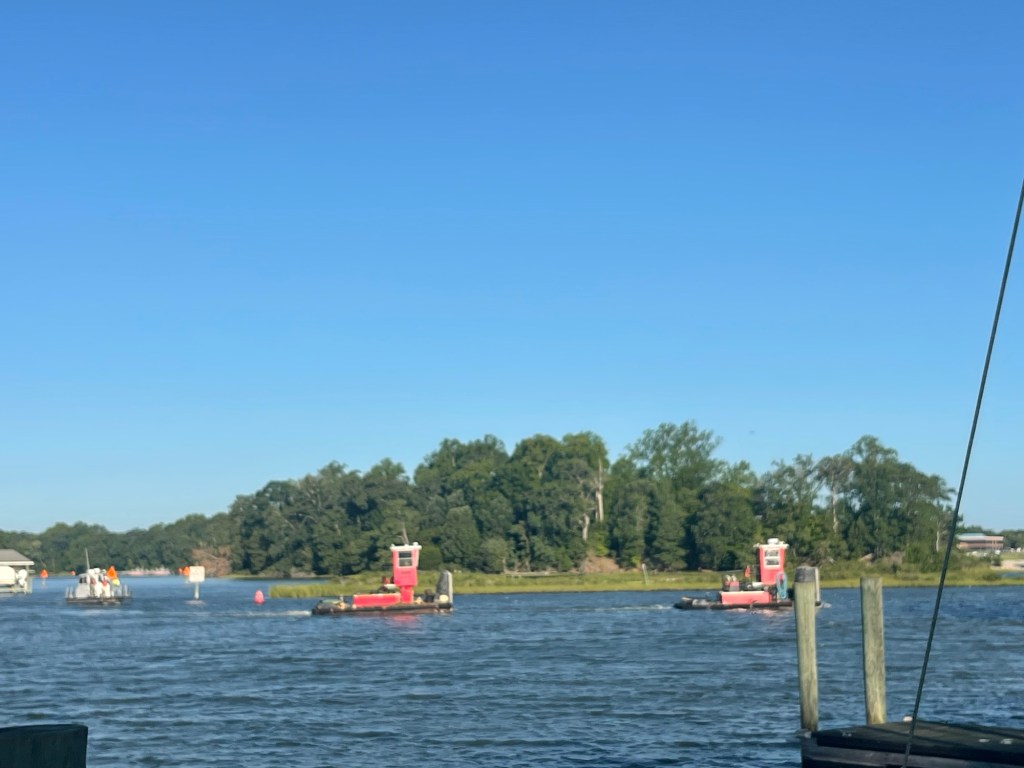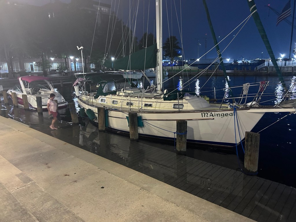 As with every trip there is always one nagging piece of equipment that will not work. Our days in Coinjock were spent squeezed into the lazarrette trying to figure out why the manual bilge is not working while Forrest ‘assists’? Brian our mechanic with the electric bilge. (He was a talker!)