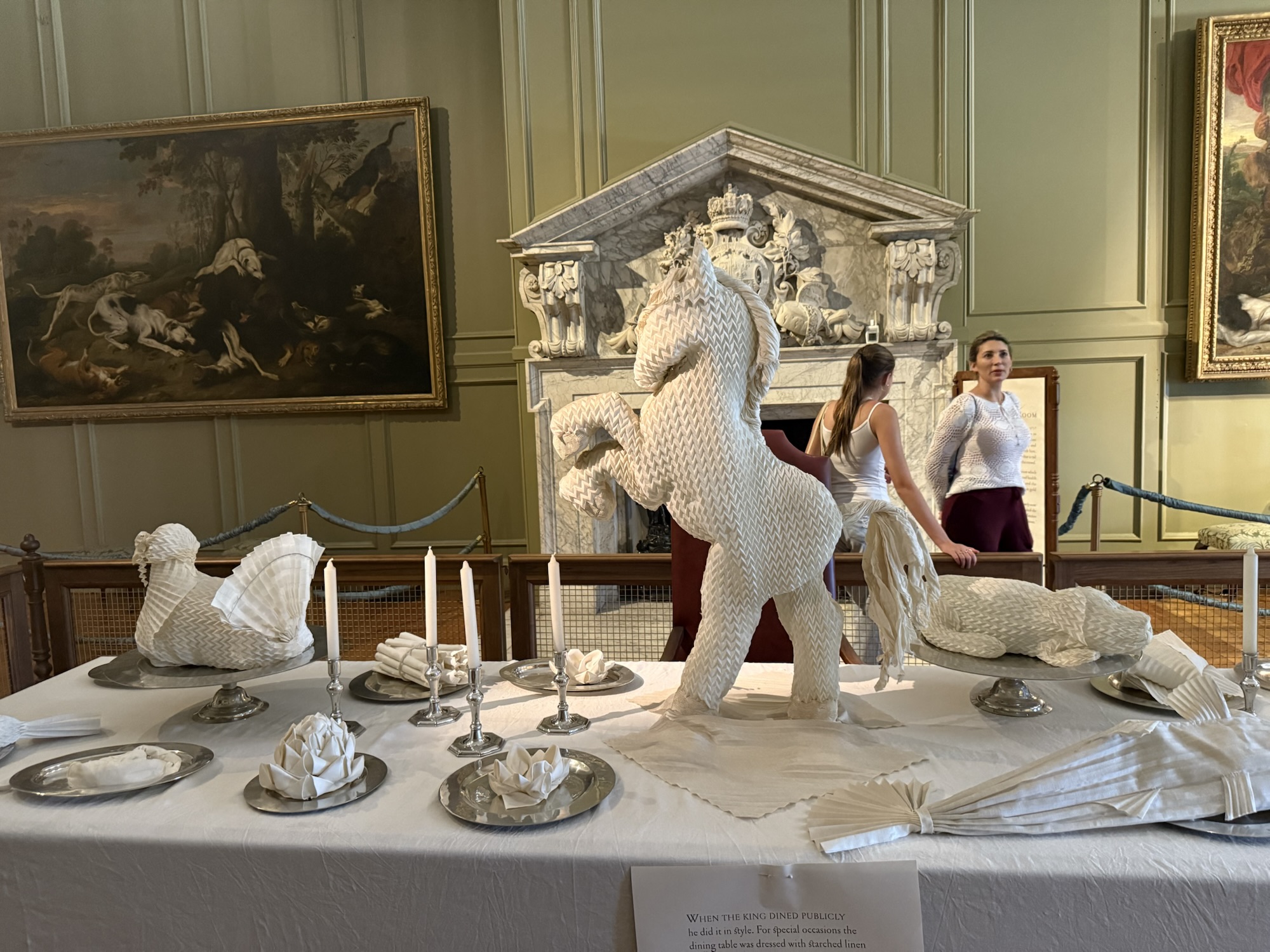 Many of the rooms were beautiful. One demonstrated how they folded the napkins in fancy shapes. It reminded me of a dinner party where one girl showed us a remarkable talent of folding an x rated napkin. I never learned!