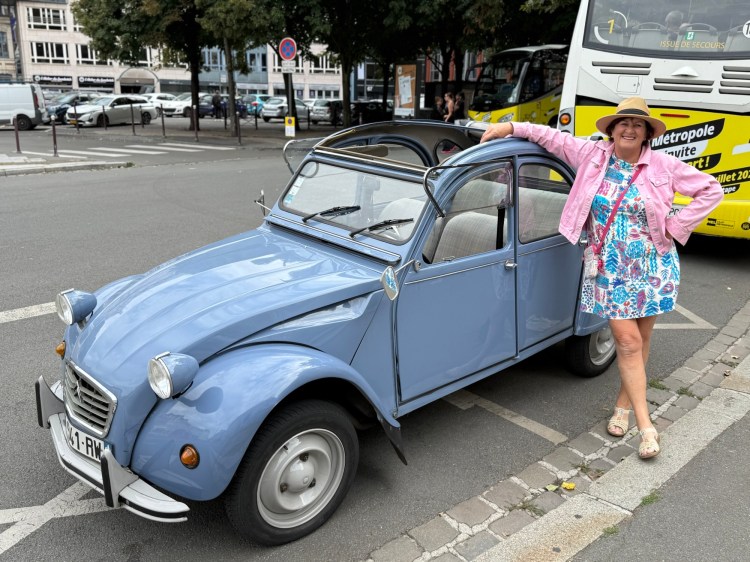 We had a great train ride to Lille France. (90 minutes !) and I had booked a tour of Lille in a 2 CV. This was my first ever car and was delighted to see this one was even the same color. You could crank start it or even push start it yourself. 20 Horse power! I thought I was being fanciful when I was thinking that it even smelled the same but the driver commented on the smell.